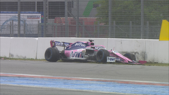German Gp Perez Crash Prompts Early Safety Car At Wet Hockenheim